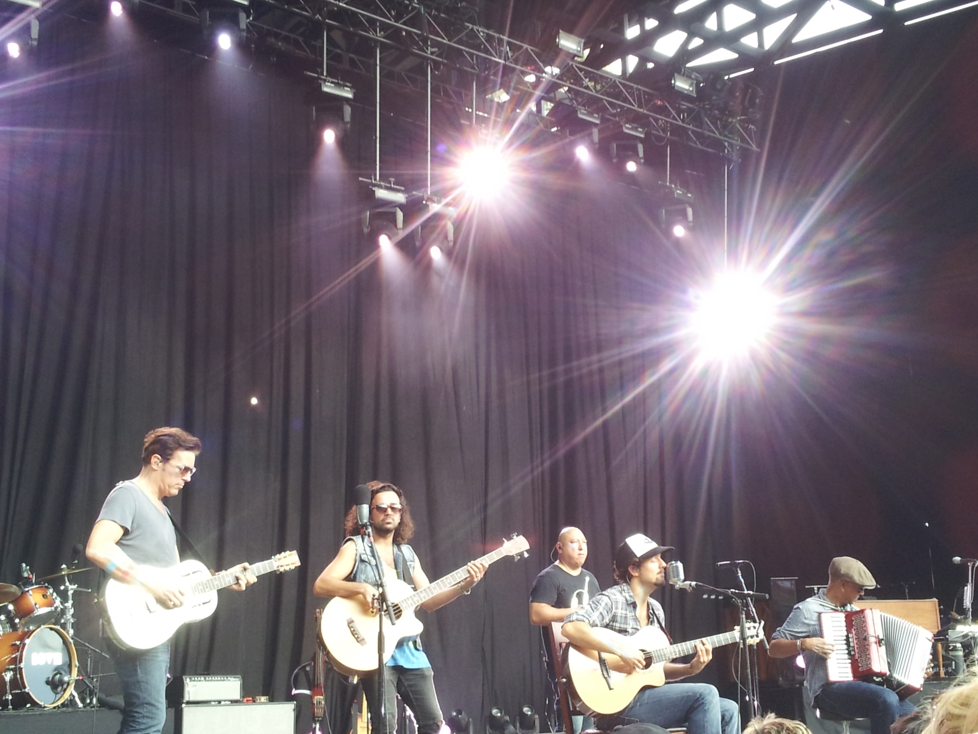 and Mraz constantly with his guitar – except for the one time he played drums. He sat behind the backbone of the stage and left the usual drummer sing a song he wrote about employment. It was bluesy and he played the hell out of a silver guitar.