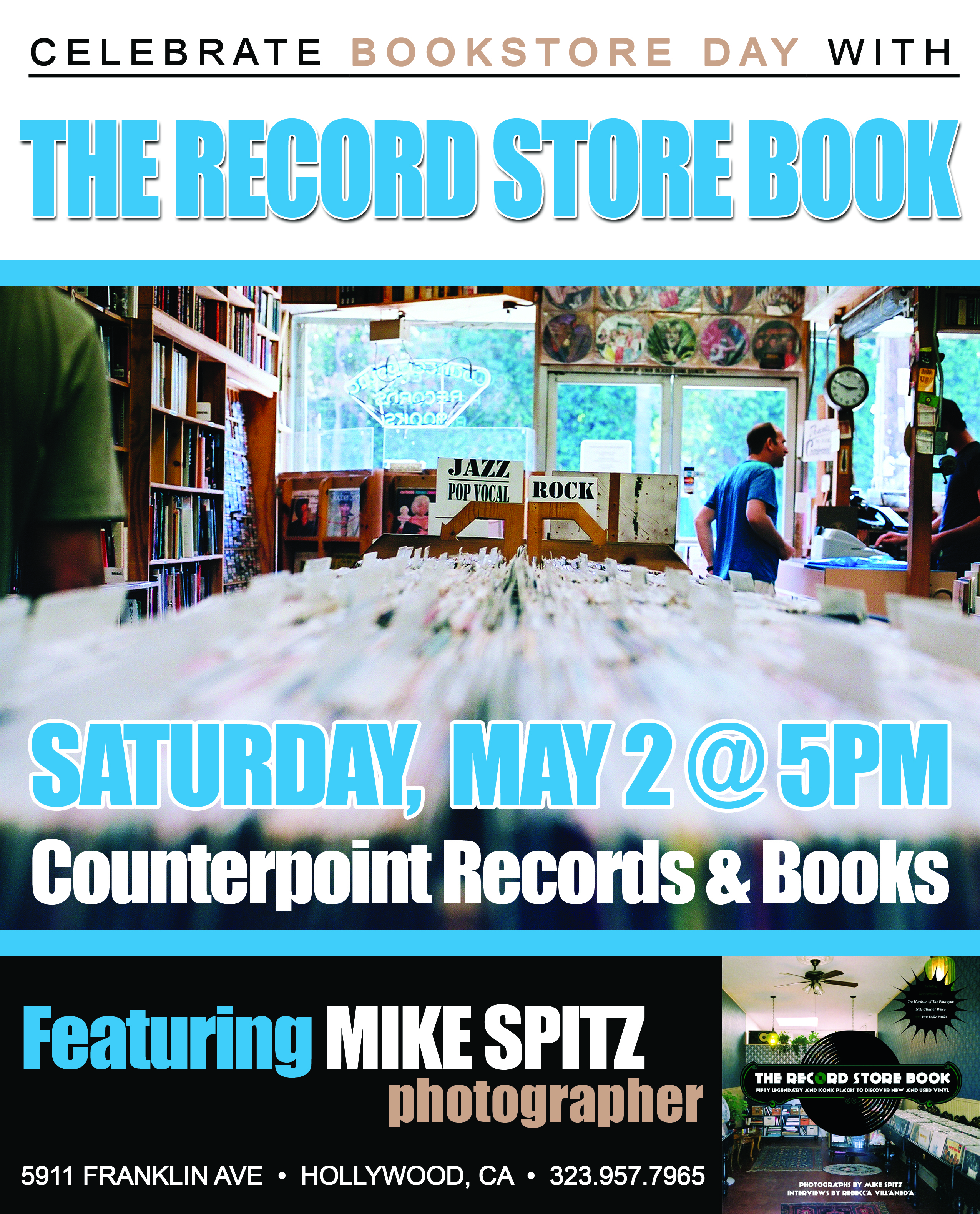 Photographer Mike Spitz takes us back a few decades when listening to music meant visiting a local record store, flipping through the bins, purchasing a record because of an interesting cover photograph or design, bring home a particular sound and letting the needle hit the vinyl. His new book, The Record Store Book, published by Rare Bird Books, takes us on a vinyl journey visiting the places and people that celebrate records. The book is enriched by interviews and text by Rebecca Villaneda and it will be sold at Urban Outfitters (US & Europe), bookstores, and select record stores with worldwide distribution. On April 18th, Mike and Rebecca will be signing books (on Record Store Day!) at Jackknife Records (11-1pm) and Record Parlour (2-4pm) in Los Angeles, ending the day with a big party and book signing at the Regent Theater in downtown Los Angeles.